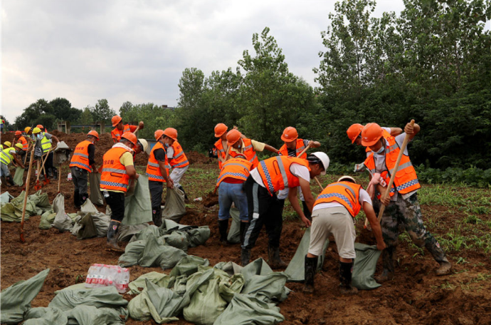武漢建工集團(tuán)防汛搶險(xiǎn)第一分隊(duì)的260多位隊(duì)員與數(shù)十臺(tái)搶險(xiǎn)車(chē)輛及機(jī)械設(shè)備,在武漢市東西湖區(qū)濱河南路集結(jié)待命。